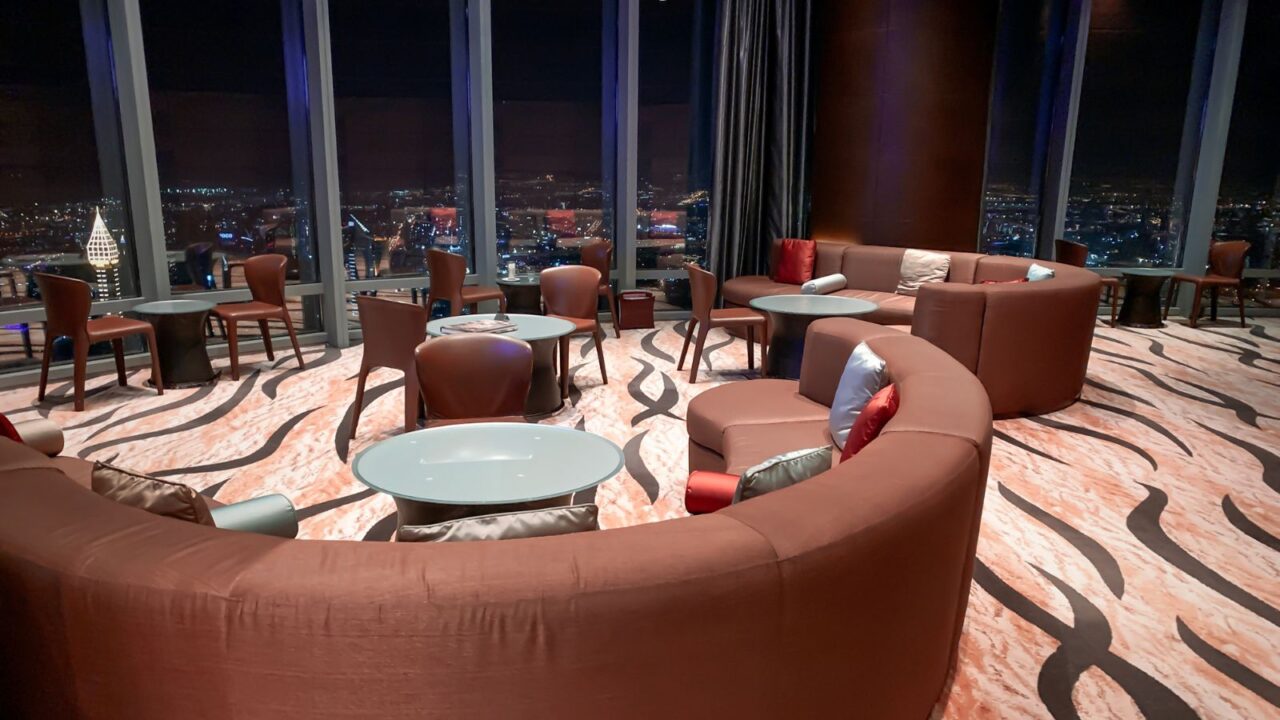 Tables near the windows offer the perfect angle for capturing Dubai’s twinkling lights. Groups, couples, and visiting stars often enjoy the lively mix of music, food, and skyline magic.