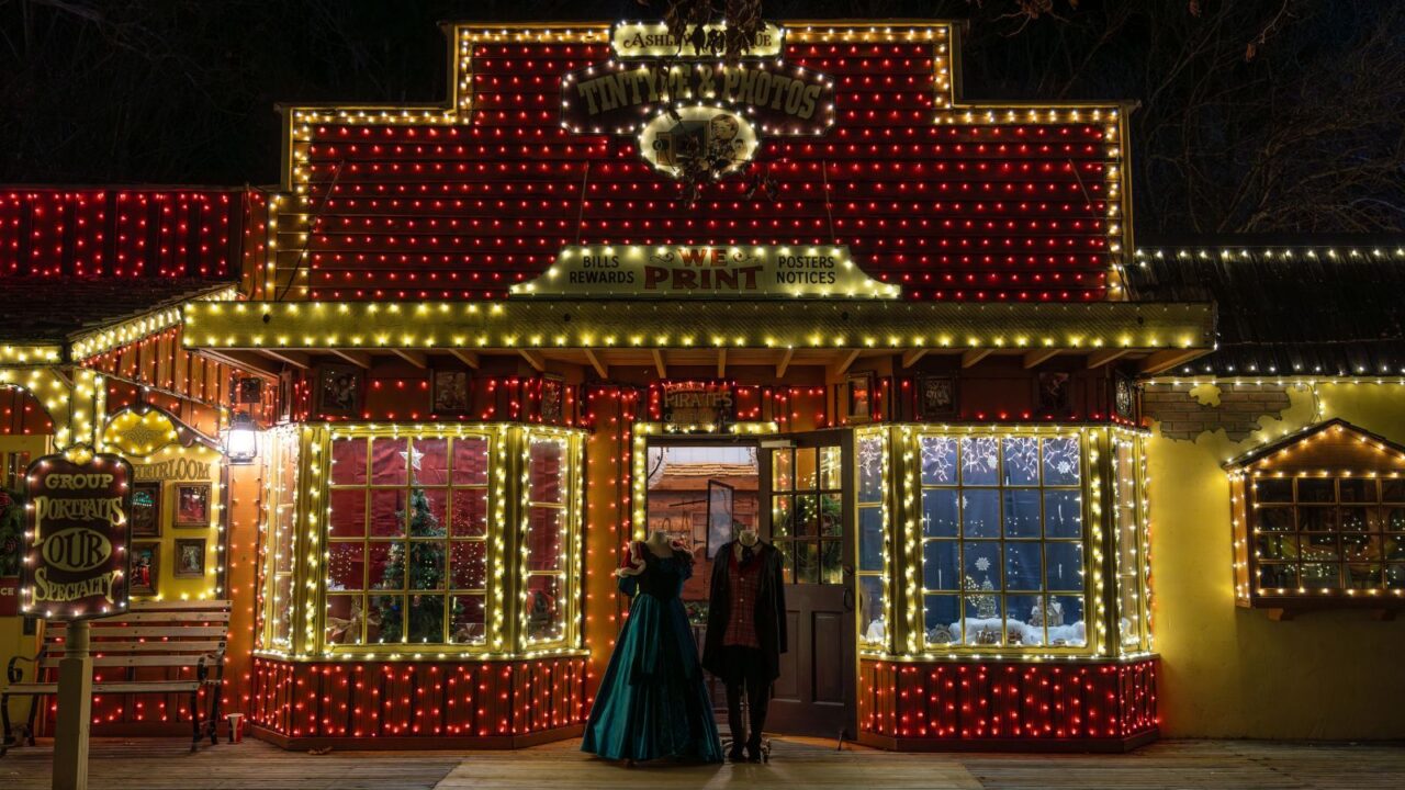 Silver Dollar City in Branson, Missouri, turns into a holiday wonderland each winter. Millions of lights cover rides, trees, and walkways across the park. The scale of the display feels impressive without losing its traditional charm.