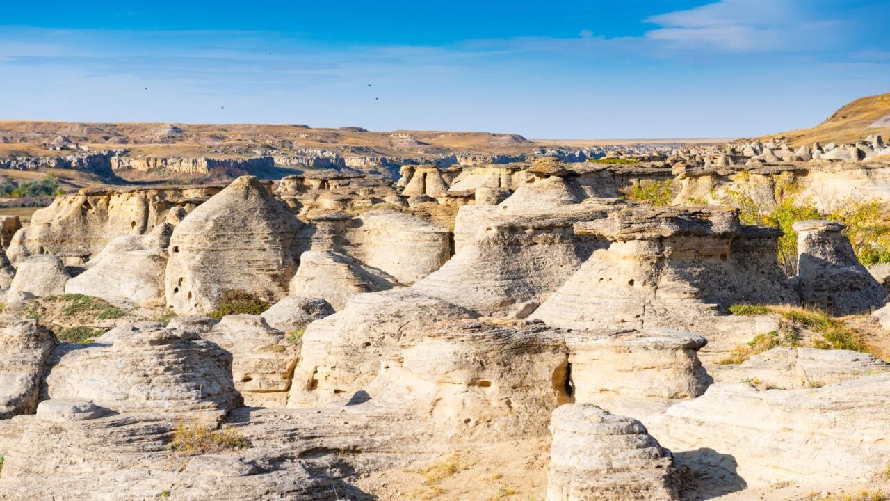 Hidden along the Milk River valley in Alberta, Writing-on-Stone, also known as Áísínai’pi, is one of Canada’s most sacred archaeological treasures. The towering sandstone hoodoos here are covered with ancient carvings and paintings that date back nearly 2,000 years.